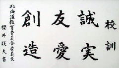 | 我が校は、国際化・情報化・技術革新及びサービス経済化などの社会・経済・科学技術の進展に対応するとともに、個性と創造性をのばし、本道はもとより国際社会の発展に積極的に貢献する心豊かで心身ともにたくましい人材を育成するため、国際化、情報化に対応する複合的な教育を目指す新しいタイプの高等学校の名称として『北海道札幌国際情報高等学校』としたものである。 |